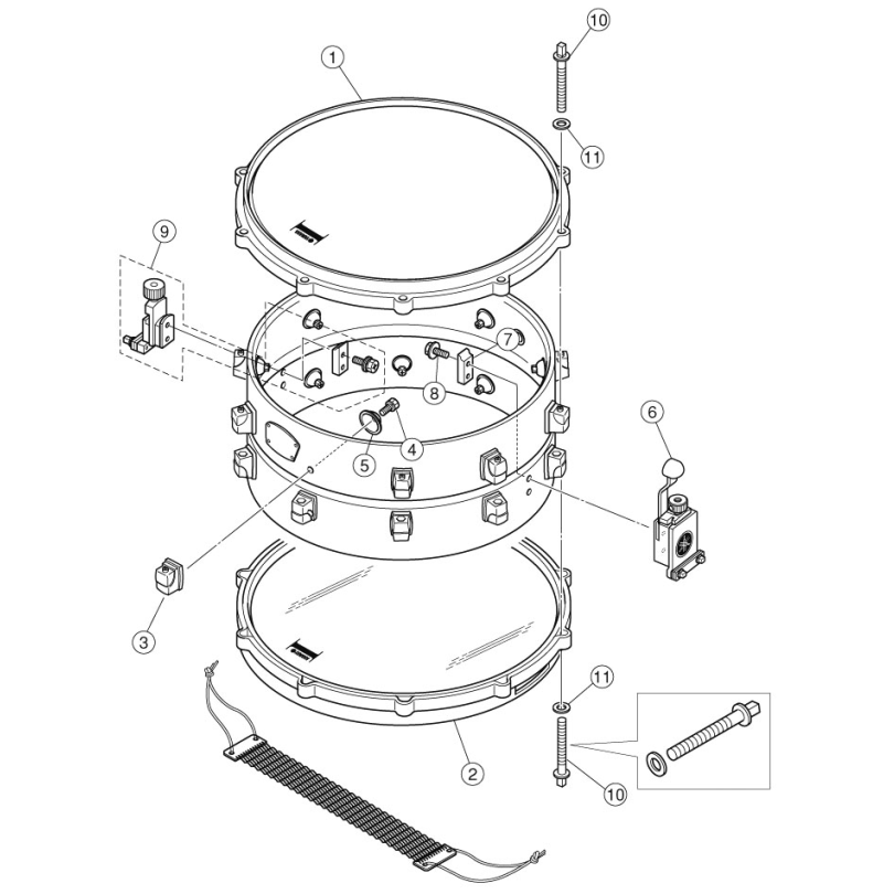 (1) Official catalog : Jimmy Chamberlin - SD2455JC size > diameter size > depth shell > material shell > thickness shell > finish hoops > type lugs > type wire > type wire > material wire > finish strainers > release strainers > butt